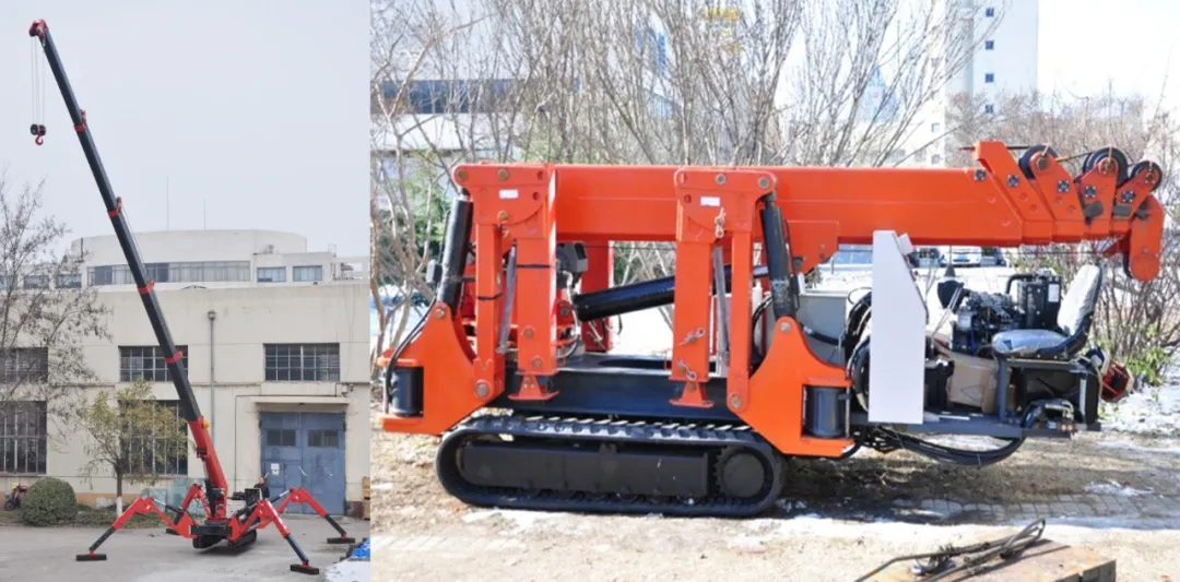 “蜘蛛式微型起重機”具備起重臂多級伸縮、設備閥式二級液壓缸結構尺寸小、起重臂圓角六邊形截面結構設計、“蜘蛛”式穩(wěn)定支腿、適應軟土和崎嶇等復雜地面穩(wěn)定行走等特點,已應用于相關地震應急救援模擬演練,實現(xiàn)快速抵達坍塌區(qū)域、狹小空間等災害現(xiàn)場進行起重吊裝作業(yè)。